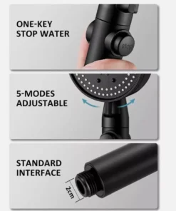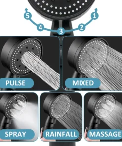 You can choose from Pulse, Rainfall, Mixed, Massage, or Spray Gun modes. Each setting delivers a unique spa-like sensation with fine, dense water droplets that feel soft and gentle on your skin.One-Key Stop Function: